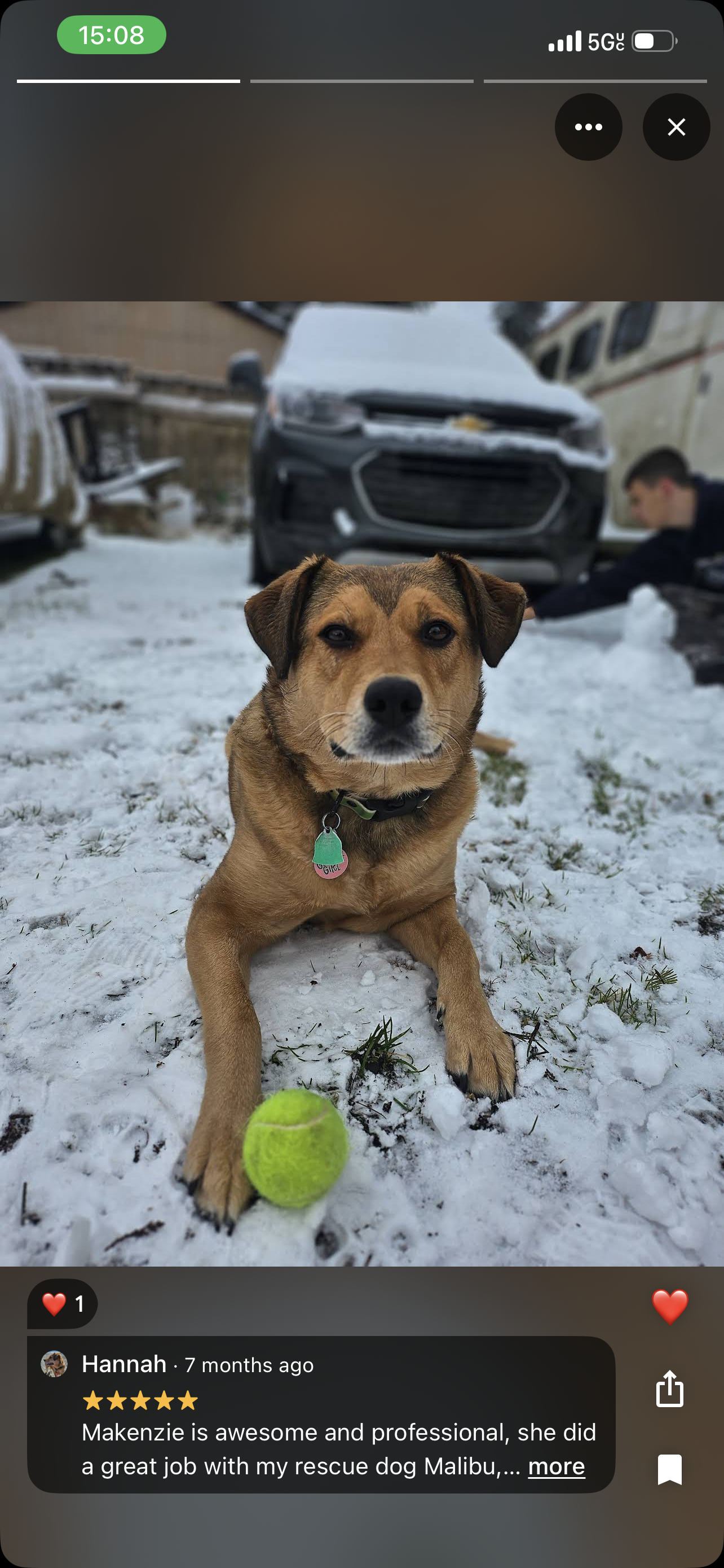 I am so impressed with her relationship to people’s dogs it's really beautiful. The training Kenzie provides is so great because the pet is happy too, you'll see in your pet how great this girl is with dogs. I would definitely recommend her service.